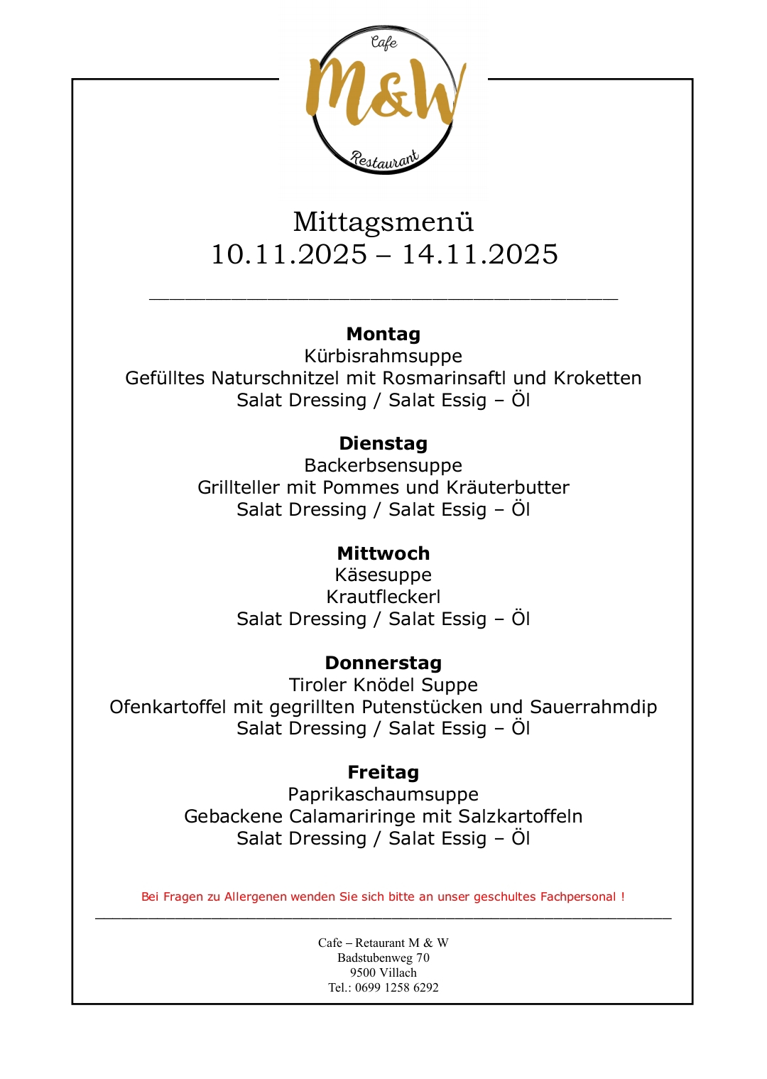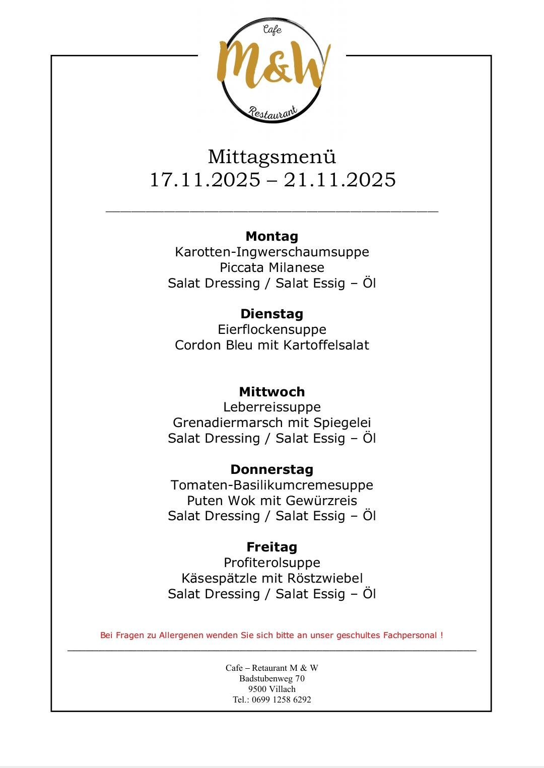 Das Café und Restaurant M&W in Villach lädt Sie ein, in entspannter Atmosphäre den Tag zu genießen. Unser Ziel ist es, einen Ort zu schaffen, an dem Sie sich wohlfühlen und den Genuss in den Vordergrund stellen können – ob bei einem geselligen Mittagessen oder einer kurzen Auszeit vom Alltag.