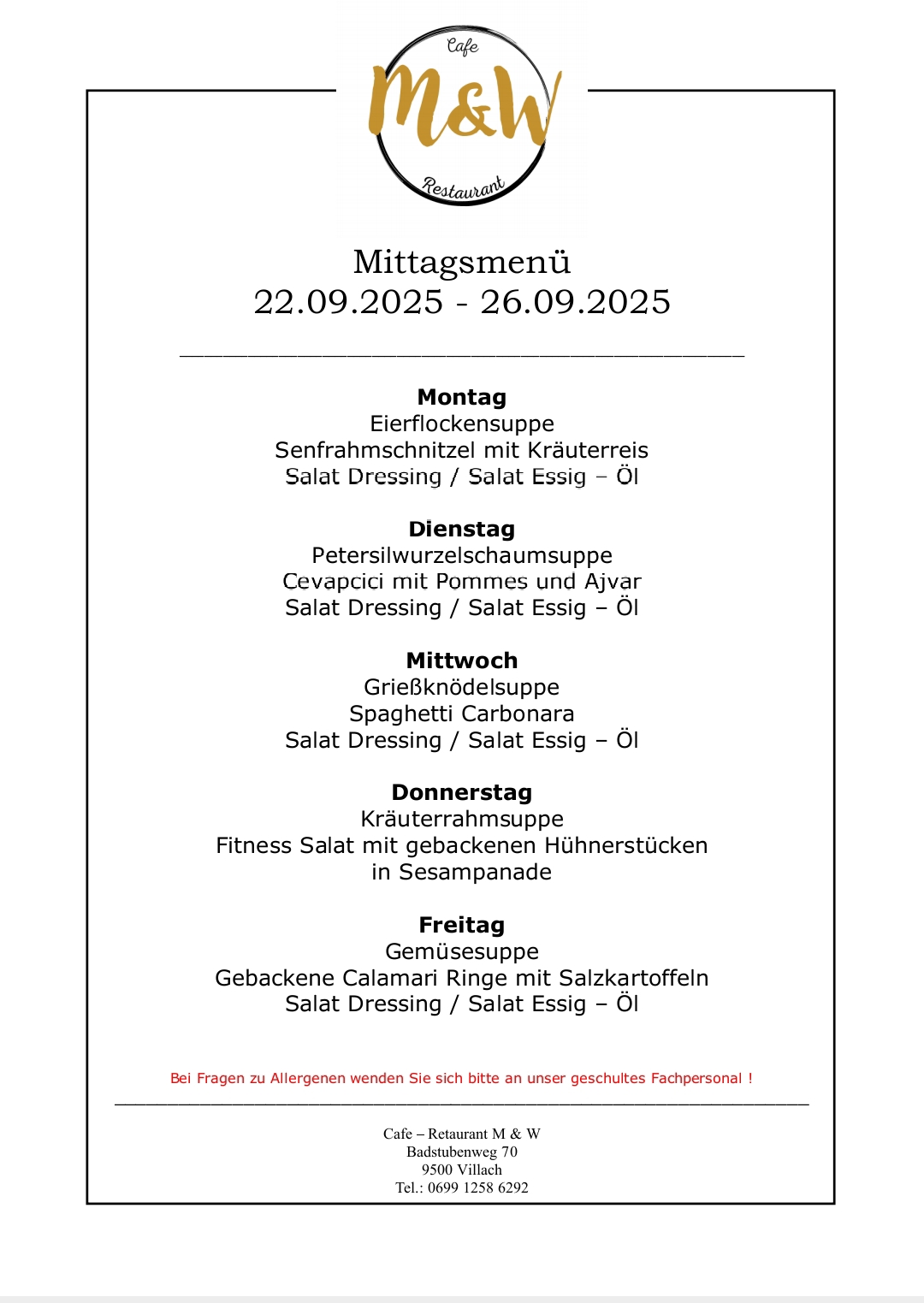 Das Café und Restaurant M&W in Villach lädt Sie ein, in entspannter Atmosphäre den Tag zu genießen. Unser Ziel ist es, einen Ort zu schaffen, an dem Sie sich wohlfühlen und den Genuss in den Vordergrund stellen können – ob bei einem geselligen Mittagessen oder einer kurzen Auszeit vom Alltag.